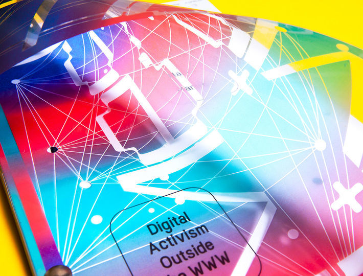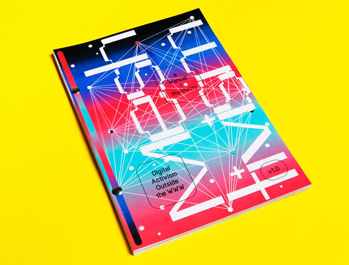 Meshtivism by Stockholm based designer and illustrator Erik Kirtley is a speculative manual manifesto from a near future in which digital activists avoid the commercialized and surveillance network we know as the internet. They organize and collaborate via so called mesh networks instead, built and maintained by themselves.